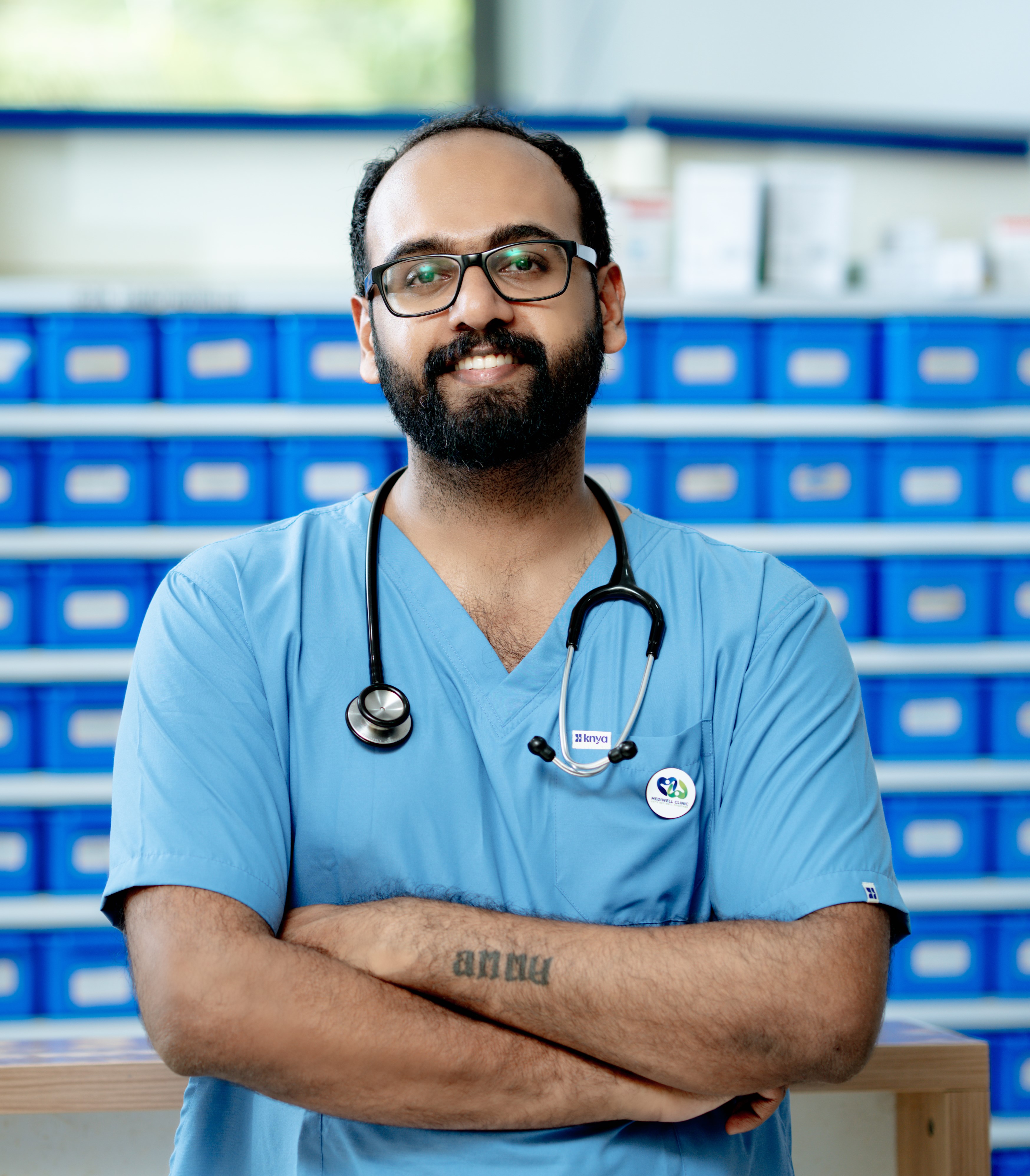 Dr. Arun served as an Assistant Surgeon at the District Hospital, Chengannur, delivering critical care during the Kerala floods. He has collaborated with NGOs to conduct health camps and awareness programs, enhancing community health education. As a Life Member of the Academy of Family Physicians of India, he is dedicated to primary care and community-focused practice.